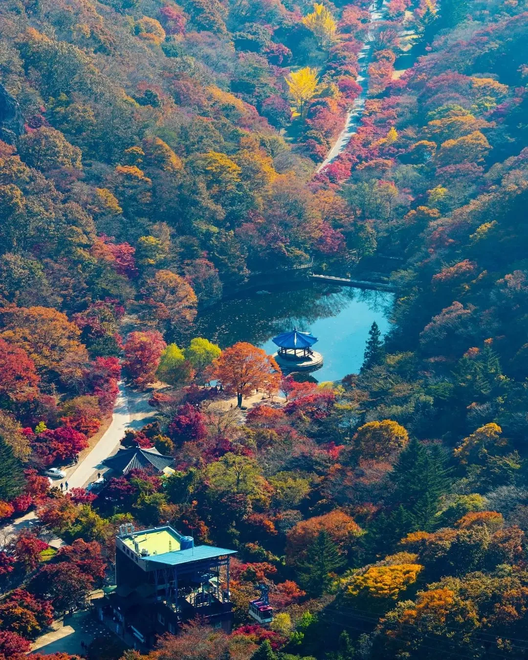 - 체력 부담을 덜고 단풍을 한눈에 보고 싶다면 케이블카 이용 추천. 정상 부근에서 내려다보는 단풍은 신비롭습니다.